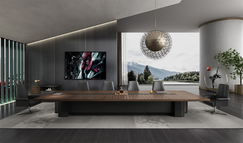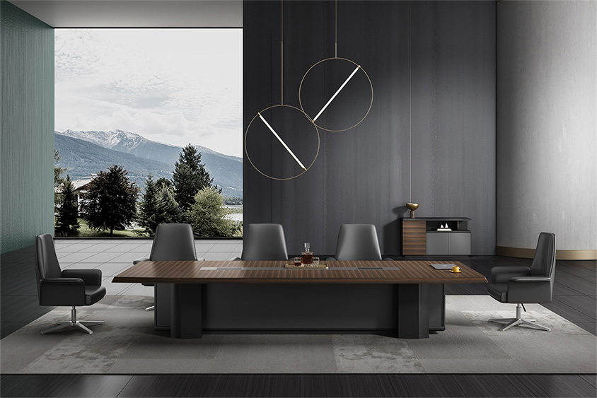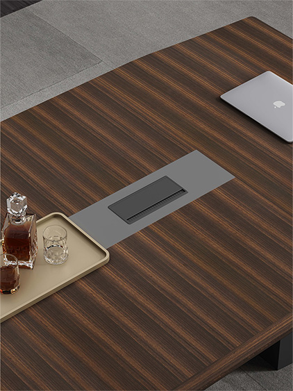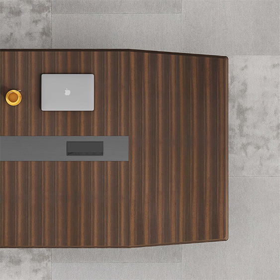 浩韵系列  深邃神秘,时尚富有魅力。态势沉稳又不失灵动,富有个性而不张扬。设计灵感源于建筑的倾斜式支撑给人带来的冲击感。不同材质的相互碰撞,实木结合金属嵌件,充满现代气息。在现有的办公功能上结合隐藏的电动升降台,将科技与美学完美结合,打造时尚简洁的现代化办公空间。