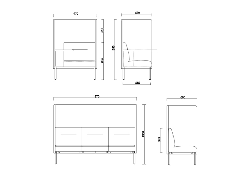 Santo Highback Sofa桑特围合沙发是在桑特模块沙发的基础上,增加了围合的软包屏风,以及书写板模块,更加适用于现代提倡的休闲私密办公模式。